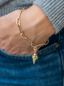 Njegov zaigran oblik savršeno se uklapa u narukvice i ogrlice, samostalno ili u kombinaciji sa drugim privescima iz kolekcije.