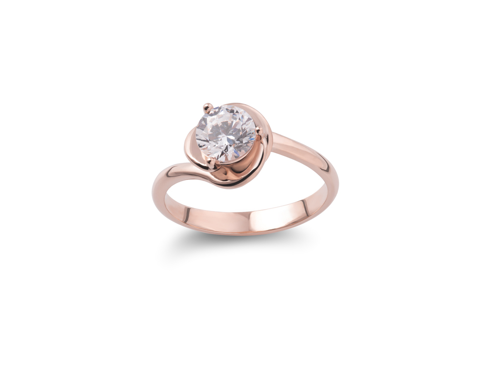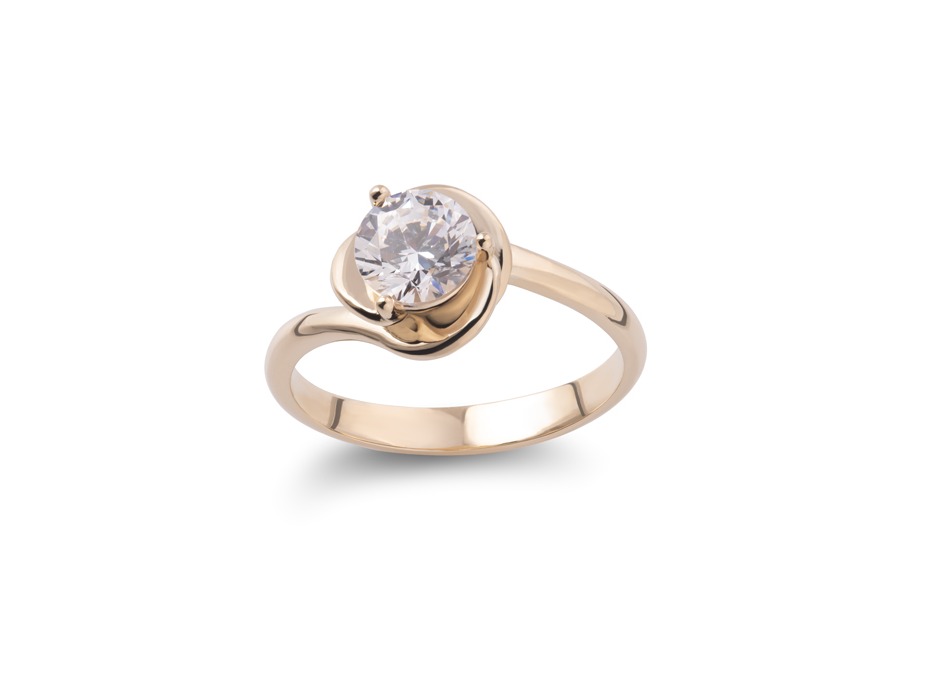 Zlatni prsten sa zaobljenim rubovima koji stvaraju latice oko sjajnog dijamanta je namenjen romantičnim damama koje umeju na prefinjen način da istaknu svoju ženstvenost.
