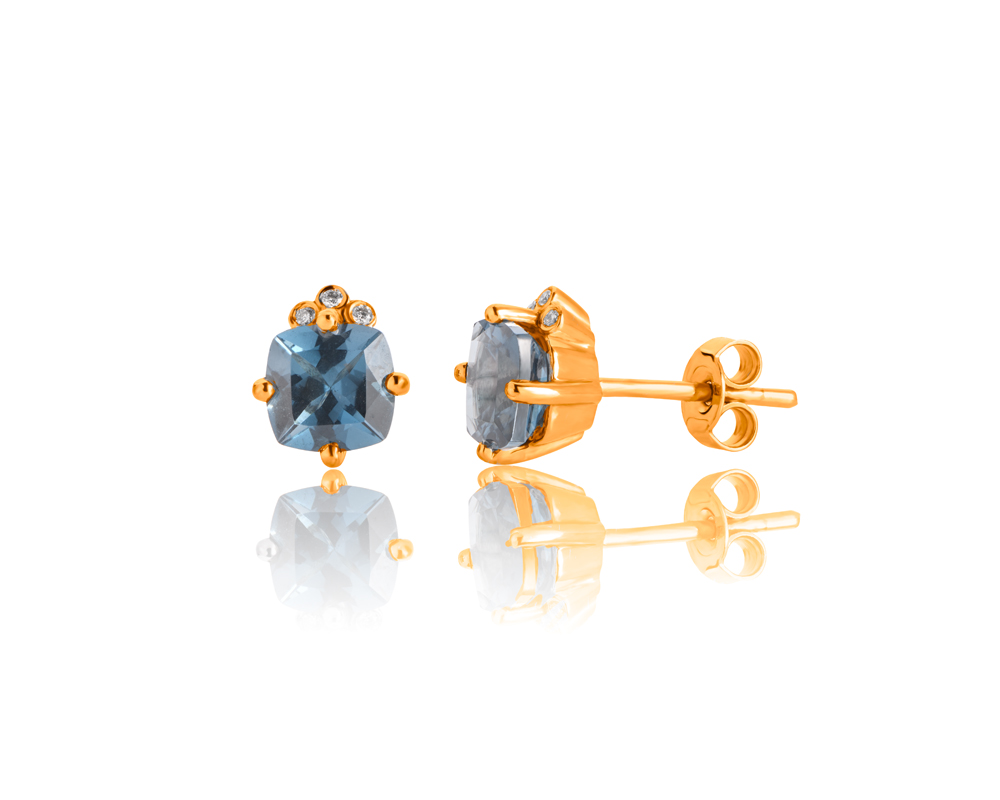 Minđuše sa „Cushion cut“ plavim topazom i brilijantima