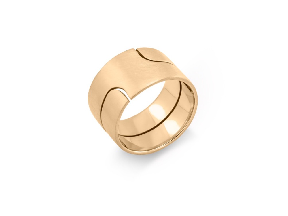 Ovaj upadljiv i jednostavan prsten nosi dah modernog nakita sedamdesetih godina prošlog veka. Njegova nežno satinirana površina dodatno doprinosi njegovom “vintage” izgledu. Elegantan dizajn dolazi iz čistih linija i oblika i namenjen je ženama koje vole unikatan nakit.